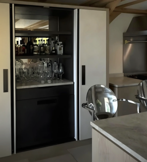 Rock plaster, by LunaPlaster is a water-resistant and non-toxic plaster, which has a natural appearance and feel. In addition to being easy to clean, it is both strong and durable, mold resistant, and has a minimal amount of VOCs. Its natural look brings depth and warmth to walls and furniture, helping create a calm, inviting atmosphere.